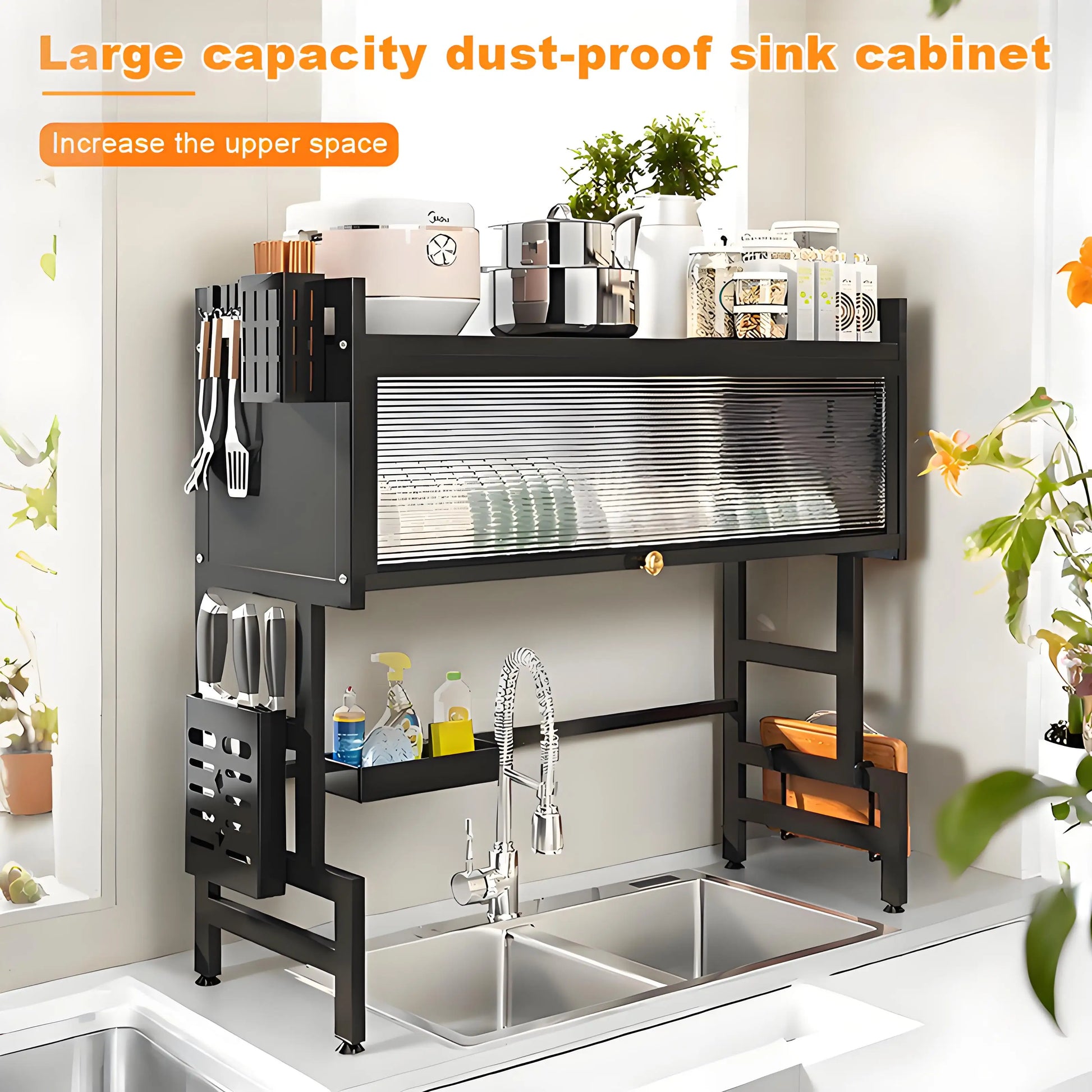 Keep your kitchen clean, clutter-free, and hygienic with this Dustproof Kitchen Organizer Rack. Designed with a flip-lid cabinet door, ventilated drainage system, and multiple compartments, this modern dish rack is the perfect all-in-one solution for storing plates, bowls, utensils, and even cutting boards.